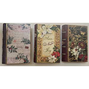 New Faux Book Storage Boxes. Set of three.Keep treasures safe and out of sight. Each measures 6 1/2” High; 4” Wide. Price For SetOf Three: $45.00. Shipping Charges Required. read more...
