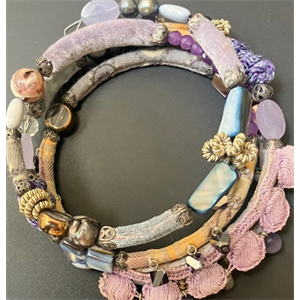 This stunning bracelet is made of beads and fabric. read more...