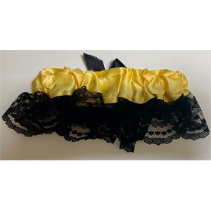 New Black Lace & Yellow Satin Garter. Decorated with large black bow. One Size Fits All. Measures 7” Across Front; 2 1/2” High. read more...