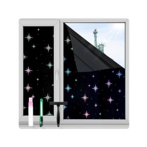 FuFin Total Blackout Window Film with Free Installation Tools, Explosion-Proof PET Material, 100% UV and Light Blocking, Rainbow Star Laser Room Darkening Window Film (Black Star 31.5"×78.7") Total Bl read more...