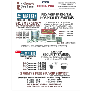 Serving the US & Canada Does your hotel have an out of date phone system? Need updating? 30 Years of Experience in Telecom and Security Camera Systems Hospitality" Hybrid - IP - PBX Phone Systems