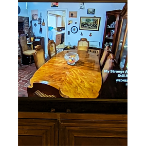Beautiful dining room table. It is like new. It's been on TV show and in a film. No one has sat on it for 30 years. It's antique and beautiful. The backing of the chairs and underneath the table very read more...