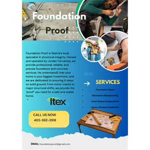 Foundation Proof is Gretna’s trusted local specialist in structural integrity, providing professional, reliable, and precise foundation and concrete services. Owned and operated by Jordan Cervantes, F read more...