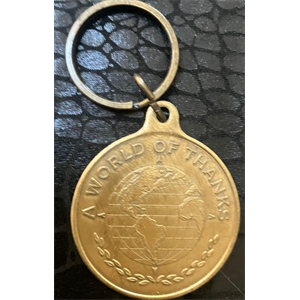 Vintage World Of Thanks Key Chain. Circa 1990’s.Great looking gold tone key chain. Measures 1 1/2” in Diameter.