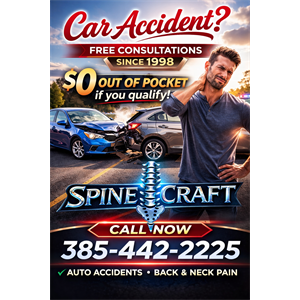 Hey Utah Valley! FREE CONSULTATIONS and this includes a FREE 20 Minute Chair Massage, 1st visit with therapies and chiropractic adjustment only $47. No Out of Pocket for auto accidents and worker's