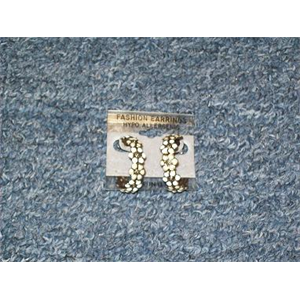 1. Fashion Earrings hypo allergenic pierced hoop earrings with embedded white flowers. Made in USA 2. Sorella gold plated deco style pierced dangling earrings 2 long. 3. Black & White 1 square pierc