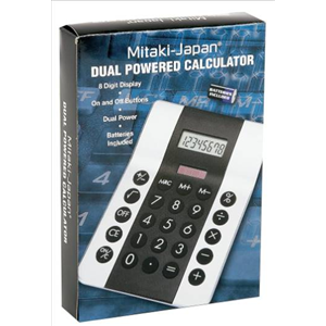 Description: Brand new Mitaki-Japan Dual Powered Calculator featuring an easy-to-read 8-digit display and simple on/off buttons for everyday use. Designed with dual power (battery included), this calc