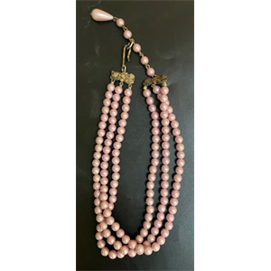Vintage Pink Pearl Choker Necklace.Great looking three strands with gold tone accents.Measures 14” Long. Excellent Condition. read more...