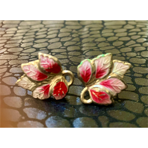 *VintageElegant Enamel Leaves ClipOn Earrings #114