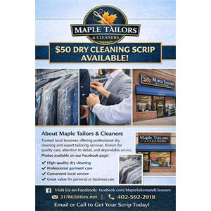 Get professional garment care with Maple Tailors & Cleaners using $50 dry cleaning scrip available through ITEX. Trusted local experts known for quality service, attention to detail, and dependable r