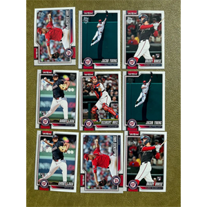 Lot of nine(9) Washington Nationals cards from the new 2026 Topps Series One release. Includes 4 doubles- see photos for cards in lot and pack-fresh conditions. See other team lot auctions to combine read more...